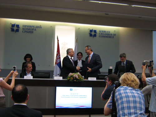 Održana Debata na temu „Ubrzanje strukturnih reformi i poboljšanje poslovnog okruženja“ kao i predstavljanje paketa ekonomskih mera Vlade Republike Srbije koje je prezentovao ministar finansija i privrede Mlađan Dinkić okupila je značajan broj privrednika, bankara, predstavnika institucija a učesnici debate su bili predsednik i potpredsednik Industrijskog sindikata Srbije Dragan Matić i Negoslav Jovanović. Ovom prilikom ministar Mlađan Dinkić i predsednik Privredne komore Srbije Željko Sertić potpisali su Memorandum o saradnji, koji sadrži želju da se zajedničkim snagama rešavaju nastali problemi, sprovode aktivnosti na poboljšanju društvene i poslovne klime a u cilju privlačenja stranih investitora i otvaranja radnih mesta.