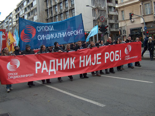 Juče je 10 000 učesnika protesta demonstriralo snagu i odlučnost a najviše solidarnost svih nas okupljenih sa različitim zastavama i obeležjima pod zastavu Srpskog sindikalnog fronta. Juče ste pokazali da je vreme kabinetskih i foteljaških sindikata prošlost i da se prava radnika moraju izboriti na platoima Narodne skupštine i Vlade Republike Srbije, fabrikama, ulicama i prugama.