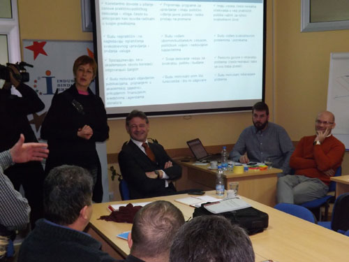 Učesnici treninga za pisanje praktičnih politika iz redova Industrijskog sindikata Srbije, Ujedinjenih sindikata Srbije i Nezavisnosg sindikata metalaca Železara Smederevo imali su priliku da razgovaraju sa švajcarskim ambasadorom Žan-Danijel Runom koji je pokazao interesovanje za najnovija događanja vezana za Zakon o radu.