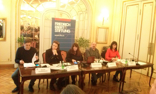 Pozdravna obraćanja učesnicima i uvodna izlaganja su imali predsednica SINOS-a Dragana Čabarkapa i predstavnik FES-a Bojan Lađevac.
