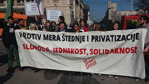 "Povodom međunarodnog, revolucionarnog praznika žena ponavljamo da živimo u zemlji u kojoj se rat nastavlja drugačijim sredstvima: nakon godina ratne ekonomije kada je nacionalističko-militaristička oligarhija opljačkala ogroman broj ljudi, usledilo je nemilosrdno brisanje i poslednjih tragova društvene svojine, i svo društveno bogatstvo prelilo se u mali broj privatnih ruku", navode u saopštenju. Protestnom maršu su se solidarno priključile i predstavnice nekoliko sindikalnih centrala a više nego ikada do sada 8. Martovski skup u Beogradu je i imao socijalnu poruku, protiv svih vidova eksploatacije, diskriminacije na radu, siromaštva i nezaposlenosti oba pola.