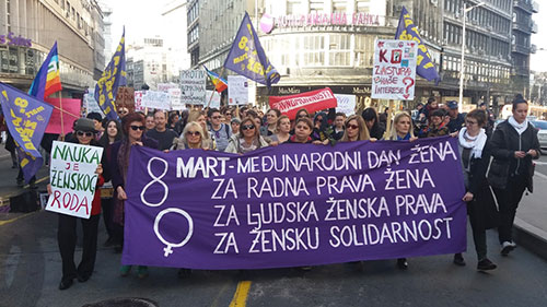 U Beogradu je održan Osmomartovski protestni marš povodom Međunarodnog dana žena uz učešće nekoliko hiljada članova udruženja i nevladinih organizacija, sindikata i građana. Protestni marš su organizovale predstavnice mreže Žene protiv nasilja, Romske ženske mreže, Mreže Žena u crnom Srbije i Rekonstrukcija Ženski fond.