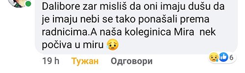 Mirjana Obradović je radila na liniji Škoda Super B i sa zdravstvenim dijagnozama je spadala u kategoriju radnika koja je morala biti van radnog mesta. Mira je to i zahtevala ali je poslovodstvo to odbilo. Cena, jedan život. Dvoje dece je ostalo bez majke.