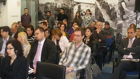 U prepunoj sali TANJUGA tribini su prisustvovali i predstavnici Industrijskog sindikata Srbije.