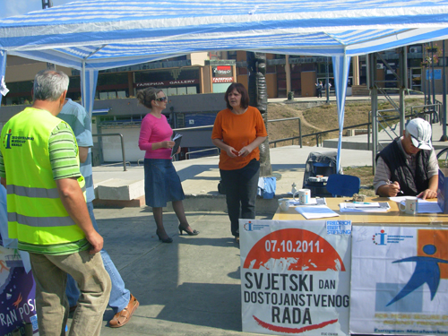 Građani Bora učesnici akcije Industrijskog sidnikata Srbije u obeležavanju Svetskog dana borbe za dostojanstven rad. Manje prisustvo nesigurnih i nedostojanstvenih poslova u Boru u odnosu na 2010.godinu.