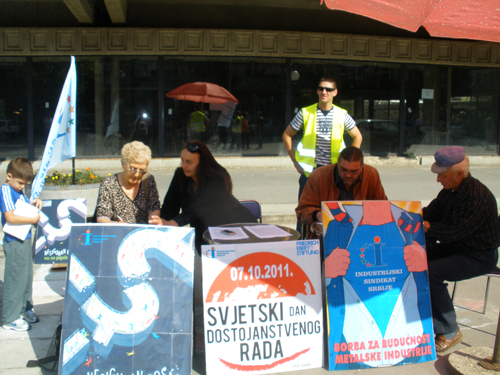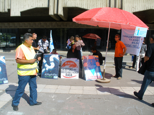 U centru Jagodine aktivisti Fabrike kablova Jagodina su tradicionalno, već treći put, obeležili 07.10. Svetski dan borbe za dostojanstven rad.