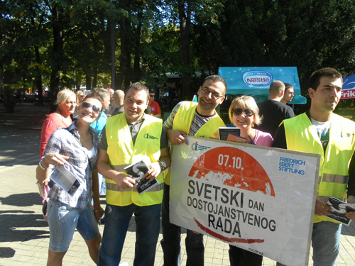 Mladi članovi ISS-a, učesnici seminara u Vrnjačkoj Banji radno su obeležili 7.10 Svetski dan dostojanstvenog rada deleći letke i propagadni materijal zainteresovanim građanima.