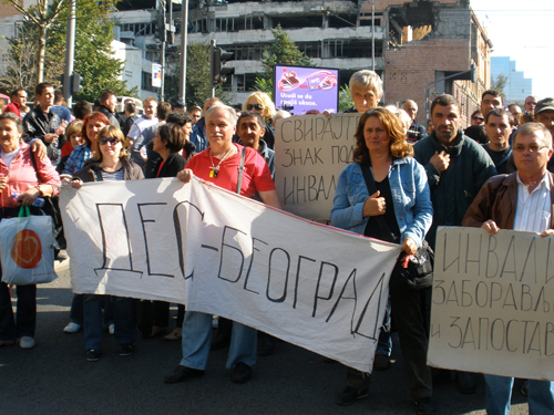 Od 4.jula ove godine radnici DES-a Beograd, njih preko 200 od kojih je polovina invalida svakodnevno protestuju zahtevajući isplatu zarada, posao, sa krajnjim ciljem da DES Beograd postane beogradsko javno preduzeće. Danas su se protestima radnika pridružila i invalidna lica, paraplegičari, distrofičari, koji su tačno u podne izvršili blokadu centralne gradske raskrsnice u Nemanjinoj zahtevajući da Ministarstvo finansija preispita njihove zahteve i iznađe rešenje za finansijsku podršku koja im je neophodna za normalan život i funkcionisanje.