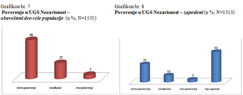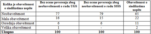 Tabela 1. Obaveštenost o radu sindikata uopšte i neobaveštenost kao prepreka ocenjivanju poverenja u UGS Nezavisnost i Samostalni sindikat (u %)