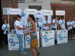 Mladi članovi Industrijskog sindikata Srbije na Exit-u 2012. Friedrich Ebert Fondacija okupila mlade iz Danske, Mađarske, Slovenije, Hrvatske, Republike Srpske i Srbije. Promocija sindikalizma „I ti si sindikat“ organizovana uz muziku i ples.