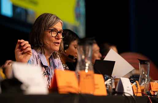 „Živimo u vremenu brzih promena... Ali kada pogledam preko Kongresne sale, osećam nadu. Vidim našu zajedničku snagu da se suočimo sa ovim izazovima. Odlučni smo da izgradimo održiviju budućnost, što se ogleda u našem sloganu, Organizovanje za pravednu budućnost.“ Mari Nilson